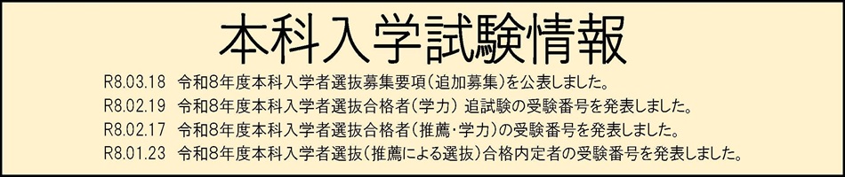 - 2026/03/18令和8年度本科入学者選抜追加募集について(出願期間:3月19日(木)9:00~3月23日(月)15:00必着)