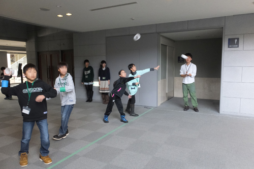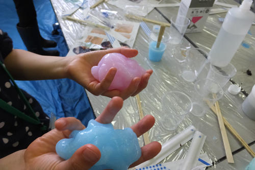参加者を3つのグループに分け,グループごとに3つのテーマ【①ジャイロ紙ヒコーキ,②バスボム作り,③スライム作り】を体験していただきました。