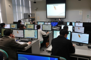 当日は、中学校教員と函館市職員の計18名が参加し、クラウド型3次元CAD「Onshape」でデザインを行い、そのデータを3Dプリンタへ送り,オリジナルキーホルダーを製作しました。その造形の待ち時間には、函館高専内の各種加工機や3次元計測機などの設備、さらに図書館の見学も行いました。