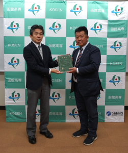 左から、函館高専 渡邊力副校長 と ZACROS株式会社 平向充氏