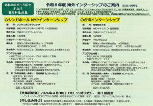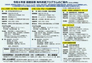 本校で企画した「令和8年度 海外派遣プログラム」についての「募集説明会」を以下のとおり開催しますので、お知らせします。