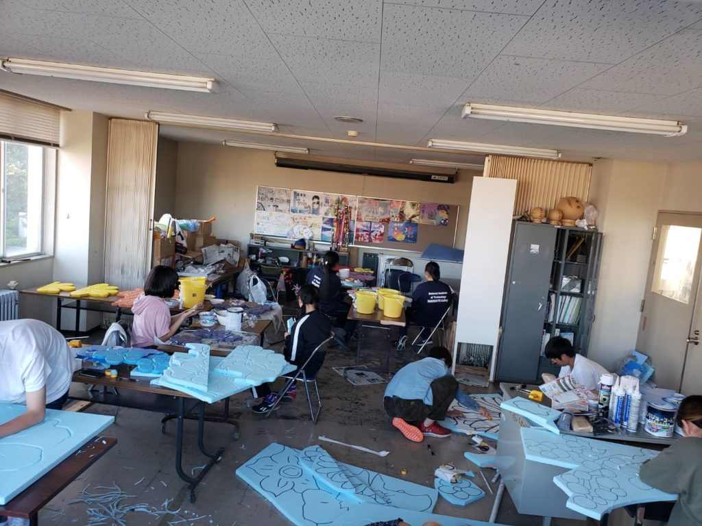 高専祭に向けて、看板づくりをコツコツ進めています。一年生が良く働いてくれます!