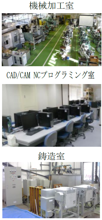 | 5 | 実習工場(774㎡) 「機械加工室」 「CAD/CAM NC プログラミング室」 「鋳造室」 |